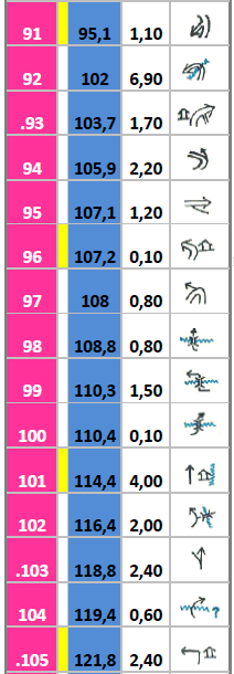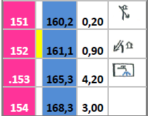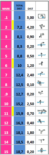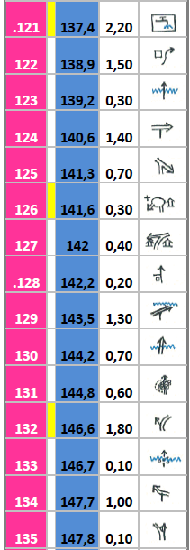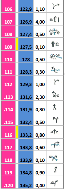 Η τρίτη στήλη  (μαυρος αριθμός με δύο δεκαδικά ψηφία σε λευκό φόντο) δείχνει την απόσταση από το προηγούμενο σημείο στο επόμενο.