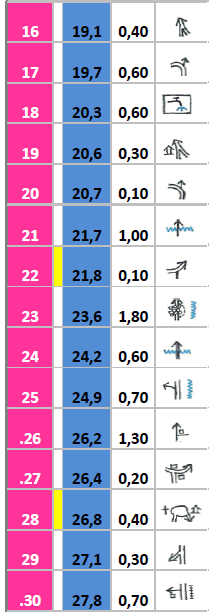 Η πρώτη στήλη ( άσπρος αριθμός σε ροζ φόντο) δείχνει τον αριθμό του σημείου (mark).